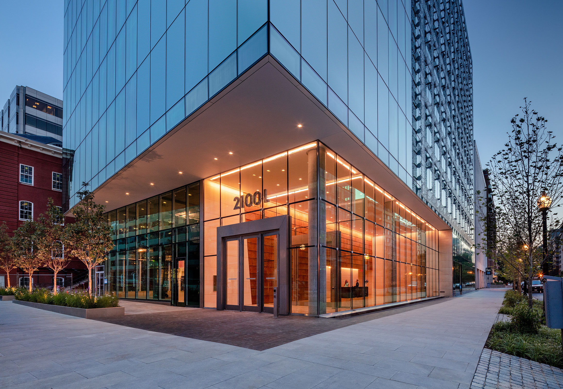 2100 L Street NW is located in the heart of DC’s Golden Triangle—part of the Central Business District. One of the newest trophy office properties in the neighborhood, 2100 L was designed with modern features such as efficiency-maximizing floor-to-ceiling glass and 20,000-sf floor plates, low-emitting materials and ample ventilation to increase air quality, a green power source that provides 35% of the building’s electricity, and energy-efficient design and fixtures.