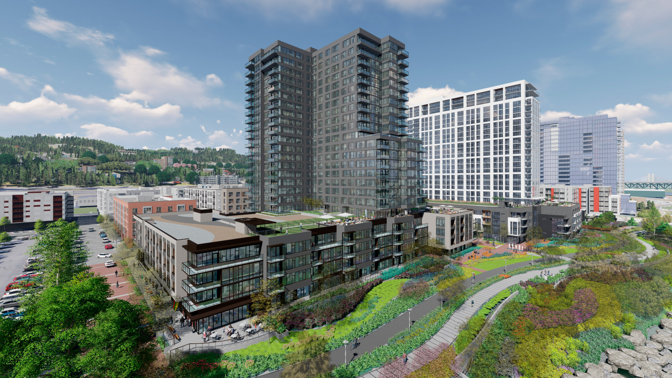 These projects are part of a 10-acre Alamo Manhattan site uniquely situated along the Willamette River in Portland, Oregon, that will include 1,200 units and 22,000 sf of commercial space.