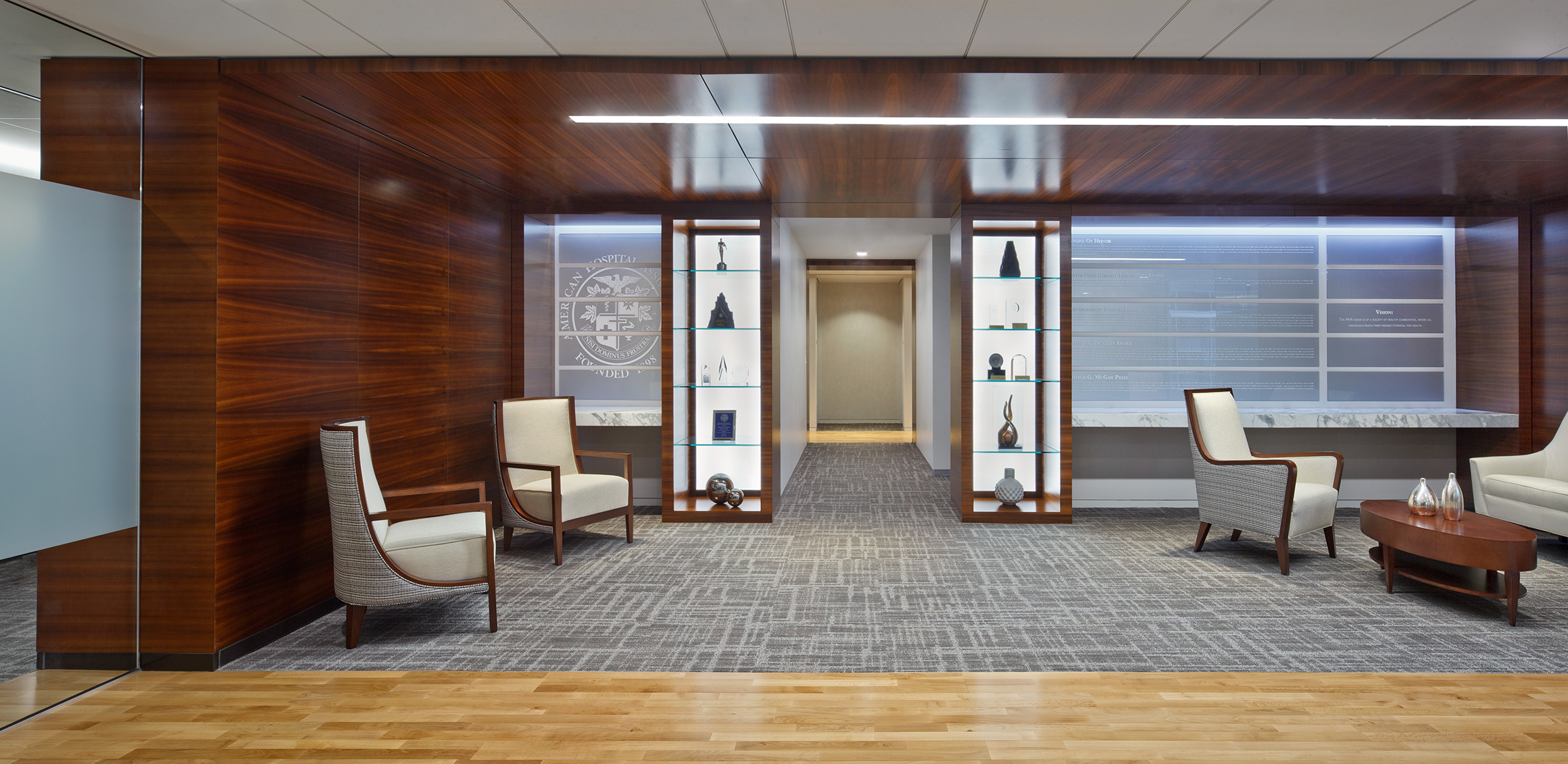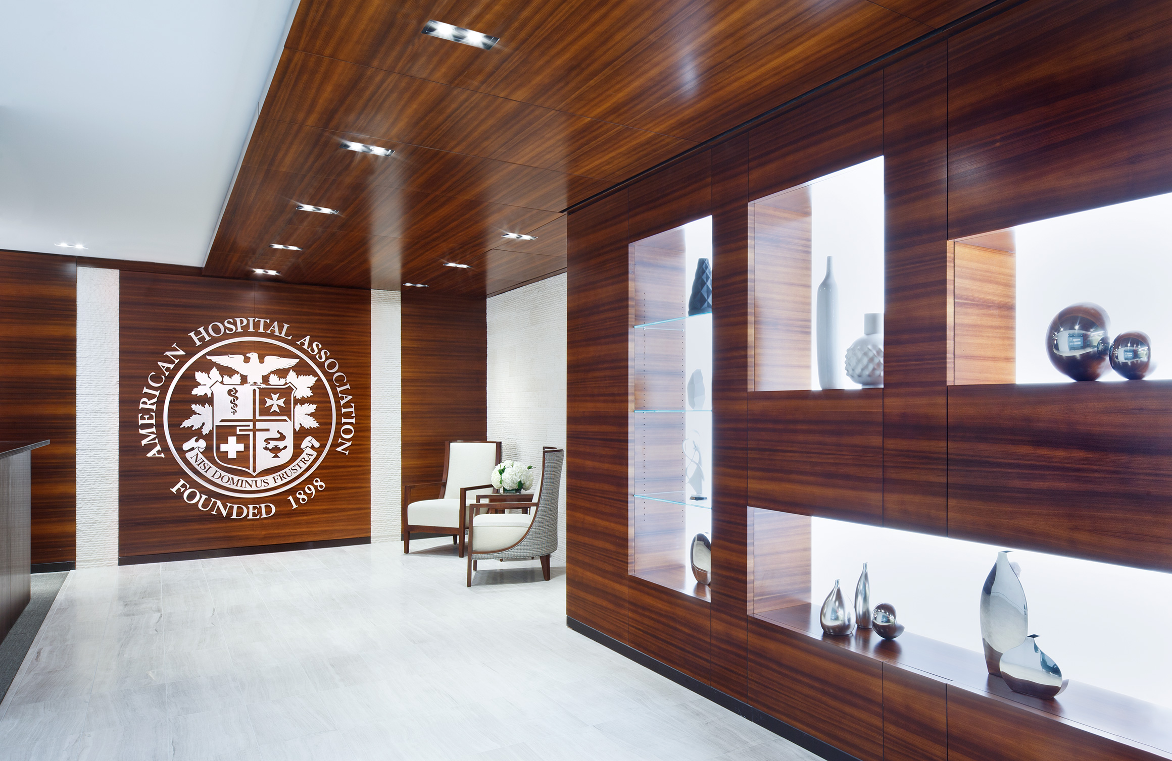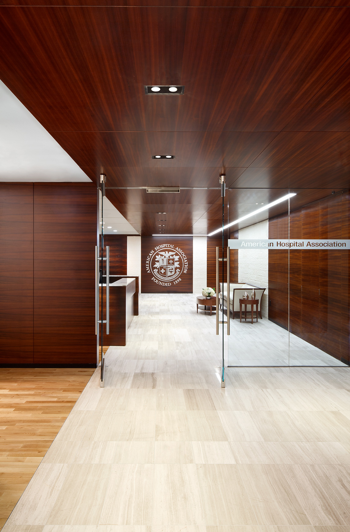 The American Hospital Association (AHA) is the national membership organization that represents and serves hospitals, health care networks, and their patients. It provides education and resources for health care leaders on issues and trends, and has been a key voice for the profession for over 100 years. Located at the contemporary new CityCenter—one of DC’s premier office buildings—the design is a modern reflection of the organization’s established history.