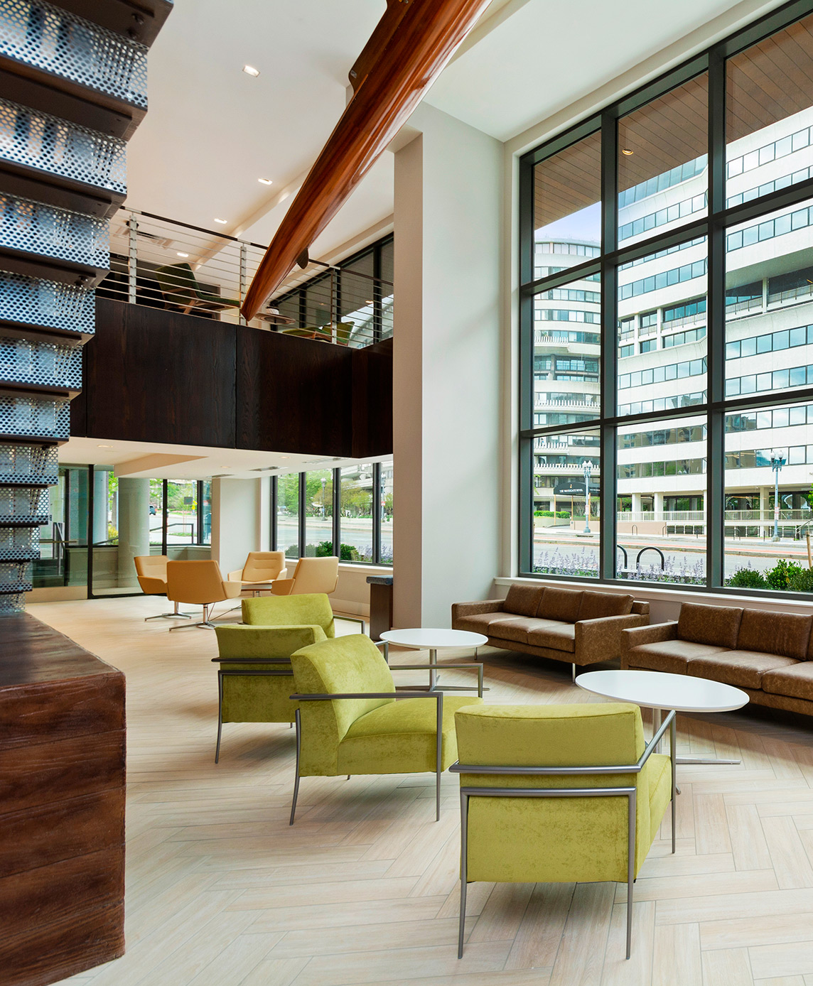 Located at 2601 Virginia Avenue NW in the Foggy Bottom neighborhood of Washington, DC, Boathouse is a 10-story mixed-use apartment building. The existing 117,000-sf building underwent a full gut renovation, and 34,000-sf of new construction was added at the east end of the building. The LEED Silver reconstruction has transformed the building to accommodate 250 apartments, 5,000-sf ground level retail, a full complement of amenity and support spaces, two levels of below grade parking, and all new exterior skin and HVAC systems. A two-story lobby with grand stair leads to a second-level fitness center, while a rooftop terrace features a new swimming pool, large club room with full kitchen, an indoor/outdoor bar, and an expansive green roof offering spectacular views of the Potomac River, Georgetown, and the District’s iconic National Mall and Monuments.