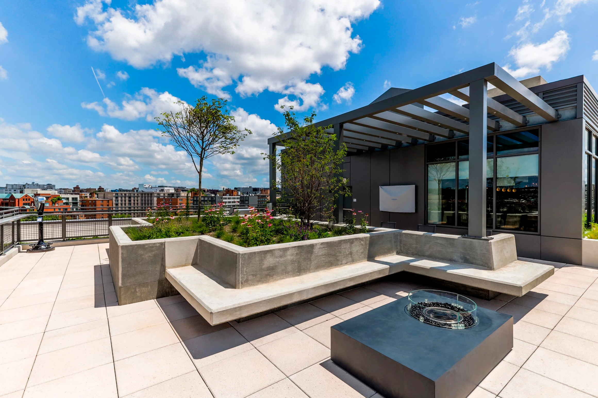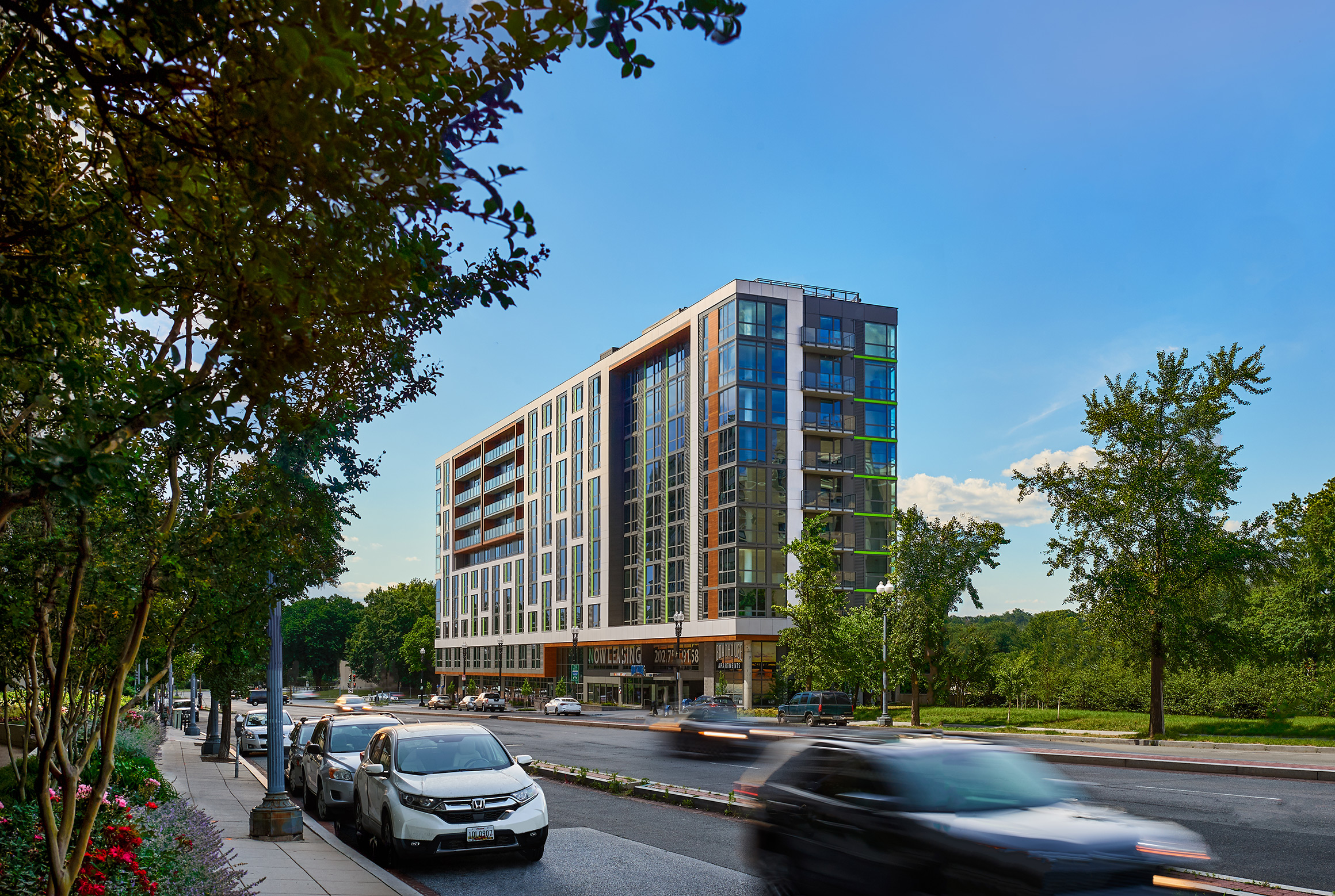 The building transformation combines all the elements you would expect in a Class A, DC apartment renovation: a contemporary new façade with an interesting use of color and materials, best-in-class units and amenities, modern sustainable features such as advanced stormwater management, and a spectacular roofscape with 360˚ views of the Nation’s Capital.
