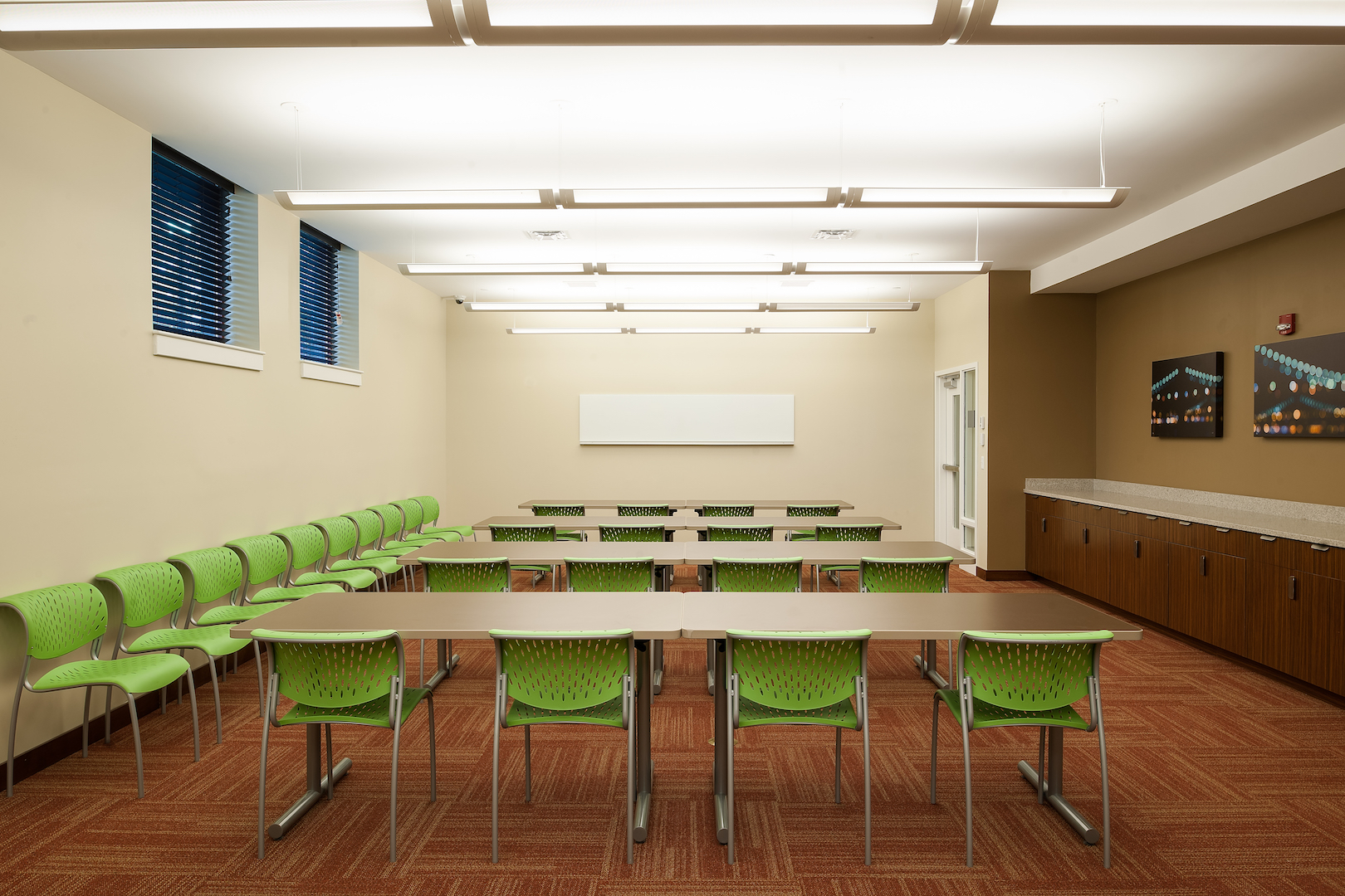 The village features a mix of single- and double-occupancy bedrooms with living rooms and full kitchens. There are additional units for eight Resident Assistant and two professional staff residents. Amenities include an internet café, a classroom/meeting room, a business center, a fitness center, and indoor bike storage.
