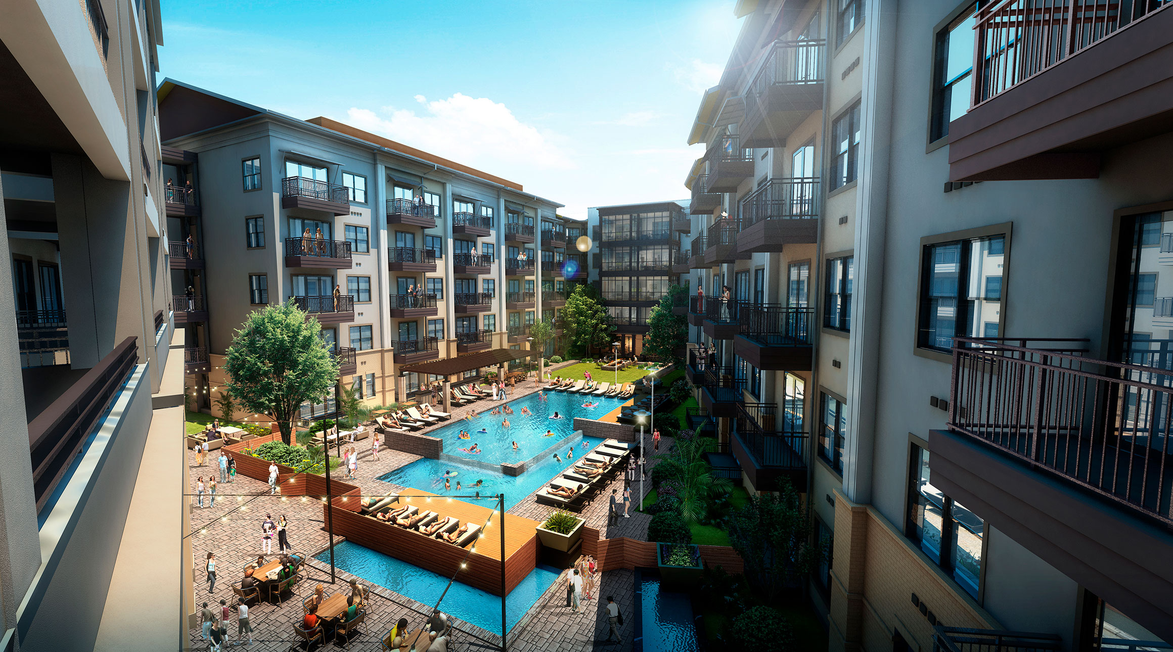 Located in Austin’s premier mixed use destination, The Domain, Flatiron is designed to provide an upscale residential experience. The well-lit amenity areas, private patios, landscape, and outdoor seating support a healthy urban lifestyle. The transitional nature of the architecture is timeless and reflective of the Flatiron building in New York City with a modern twist.
