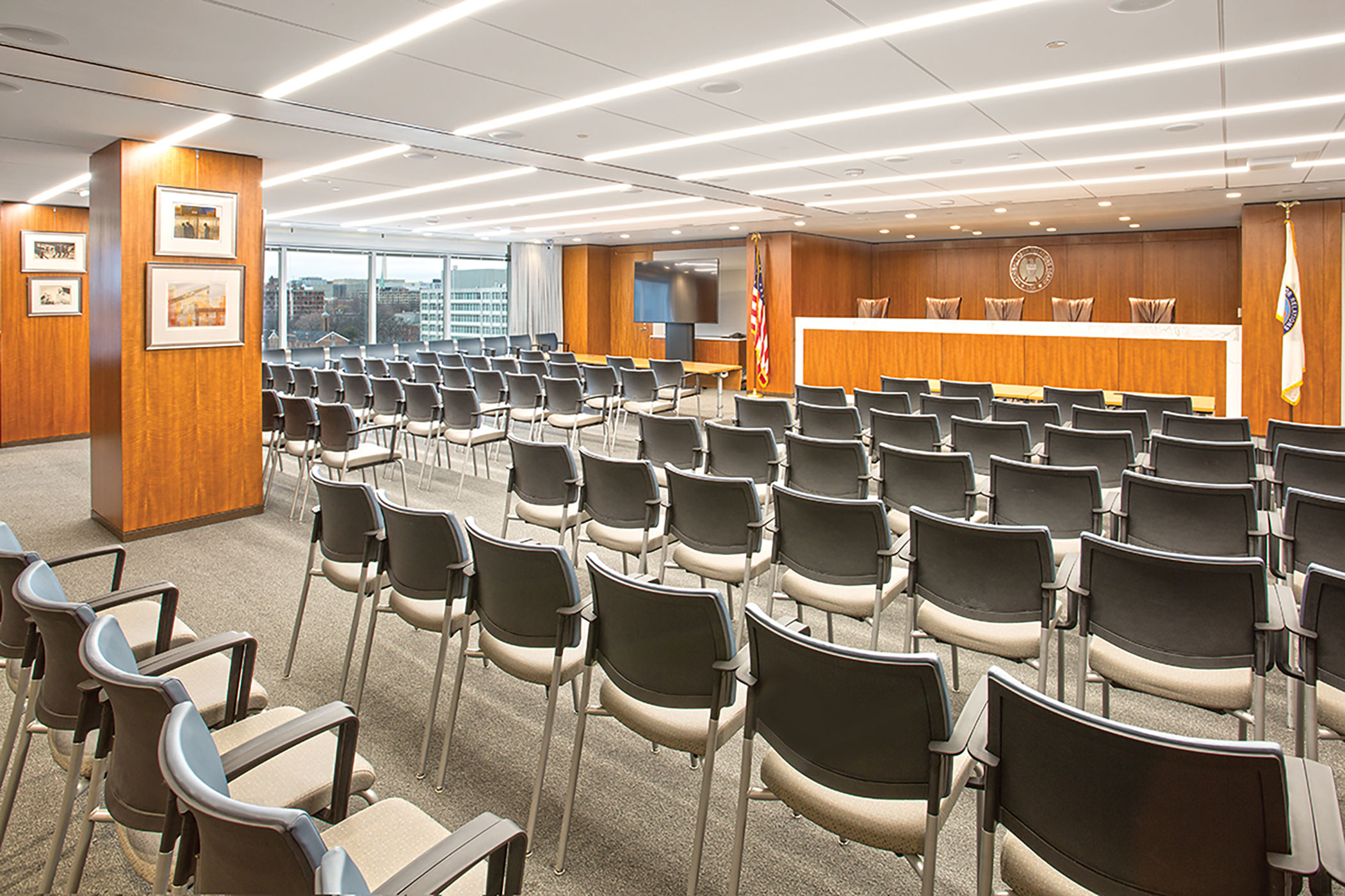 WDG was contracted under the landlord (Prudential), via their project management team (Cushman & Wakefield) to assist U.S. General Services Administration (GSA) tenant, the National Labor Relations Board (NLRB), who leased approximately 150,000-rsf of contiguous office space on four floors. The program of requirements (POR) included: a large hearing room, conference center, reception areas, private offices of various sizes, open workstation areas, break room, pantries, storage, and other typical support areas. WDG Interiors provided full services including programming, design, documentation and services during construction.