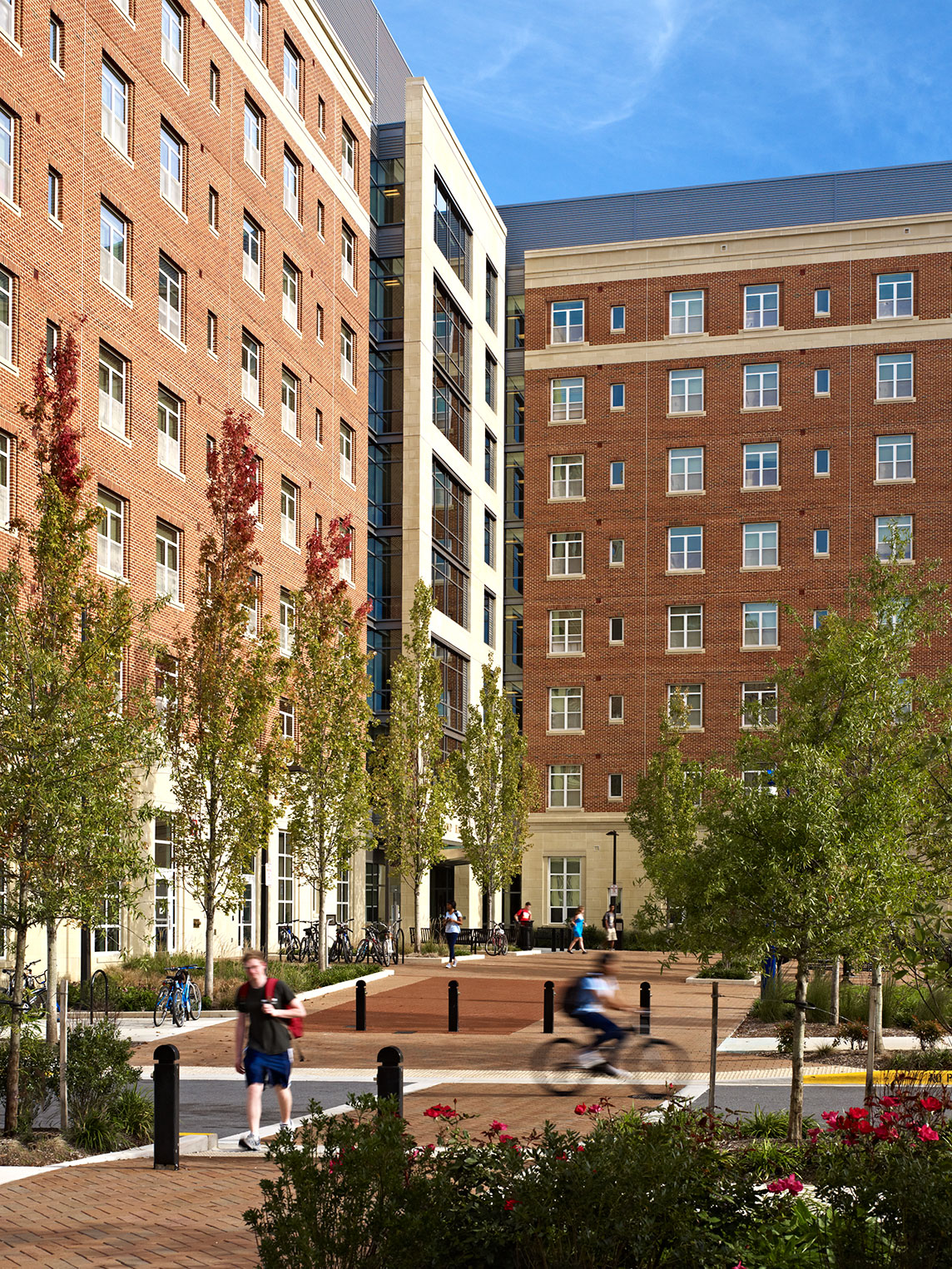 230,000-sf residence hall with 709 beds, active and study lounges on all floors, a 3000-sf multipurpose room, and 10,000-sf of classroom space for UMD’s Math and Science Learning Program.